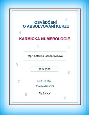 - Aktuálne sa vzdelávam aj na Certifikovanom kurze Karmická numerológia, Kurz tarotových kariet, Kurz harmonizácia čakier, Kurz astrologická psychológia, Kurz Anjelská terapia a liečenie, Akadémia - Duchovní cesta s mistrovskými krystaly a Učitelka probuzení ...